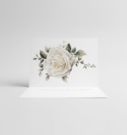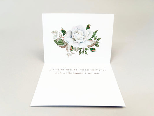 Färdiga begravnings tackkort med motiv av vit ros i akvarell. 10st inklusive kuvert.