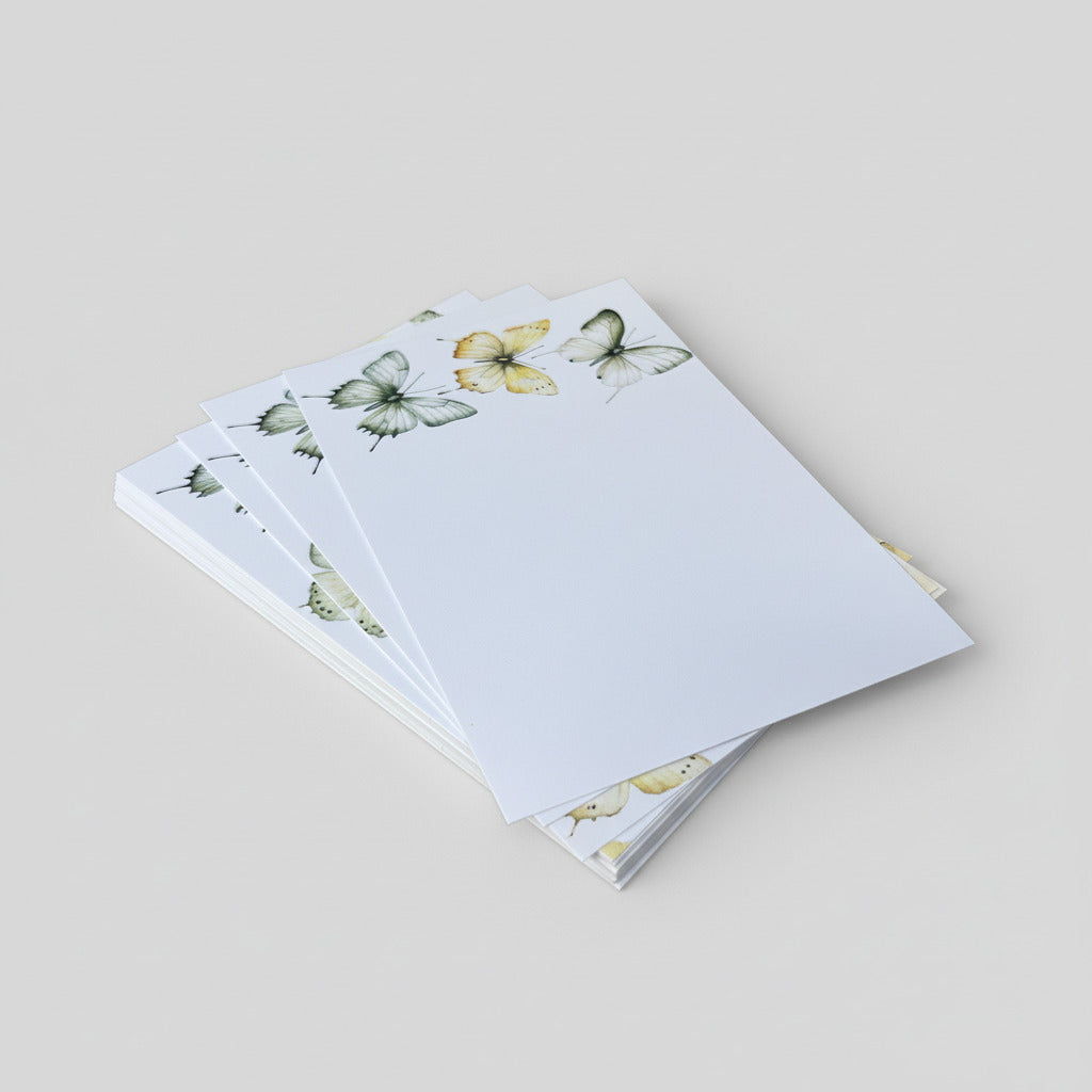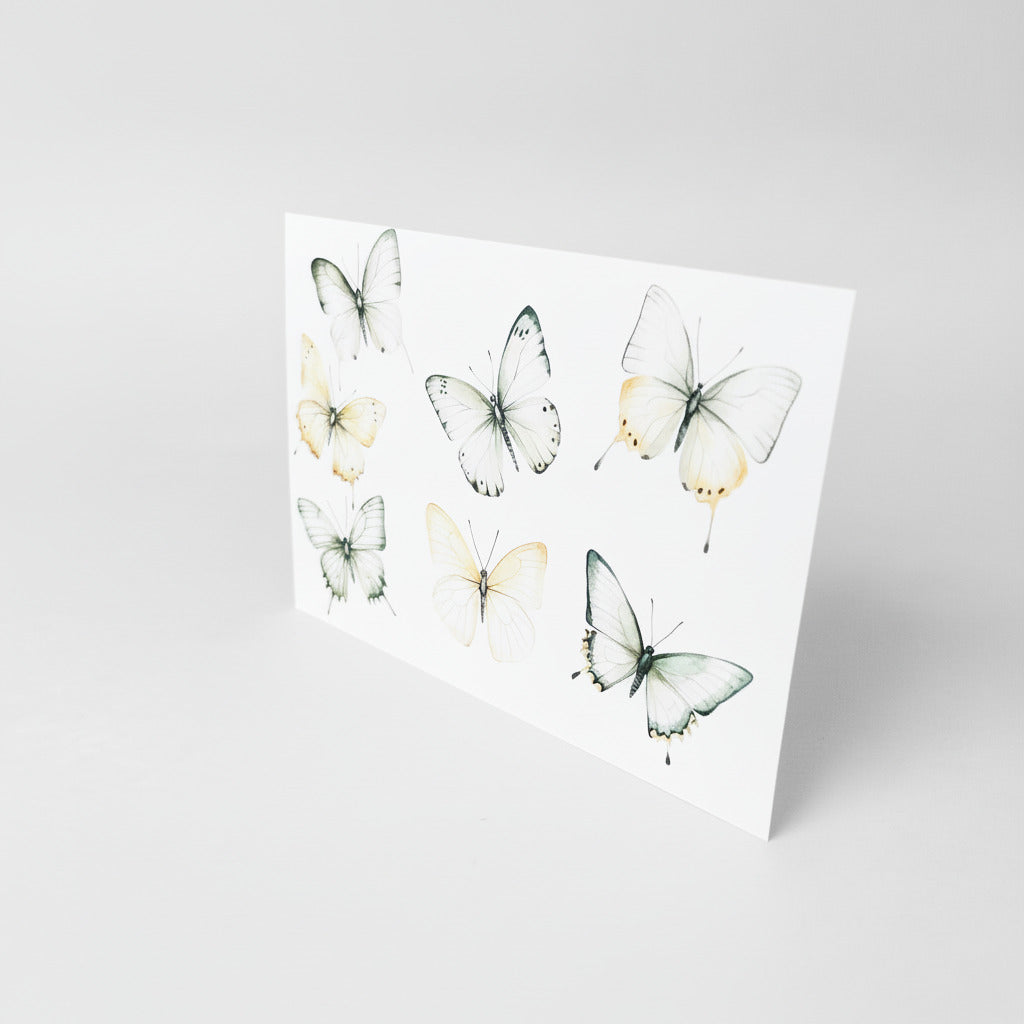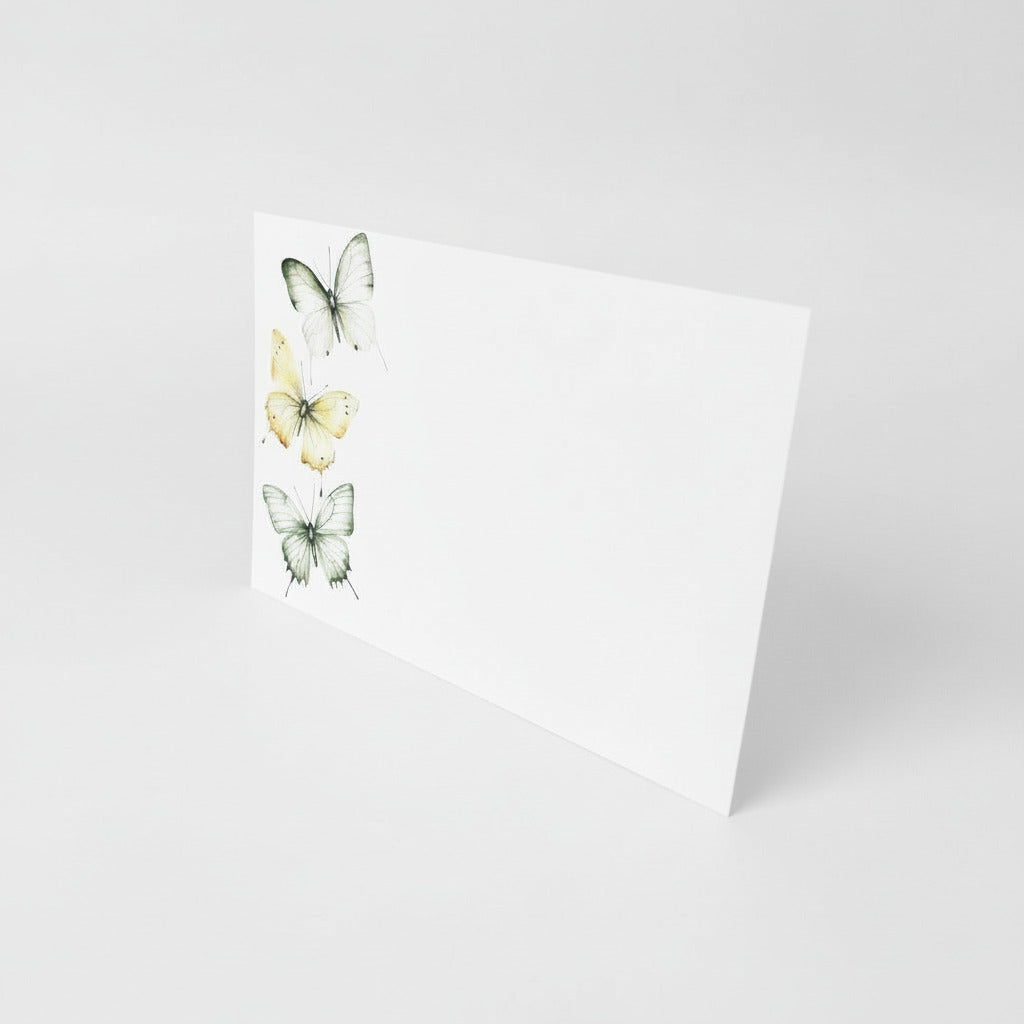 Begravningskort gula och gröna fjärillar i akvarell - 10,5 x 14,5cm
