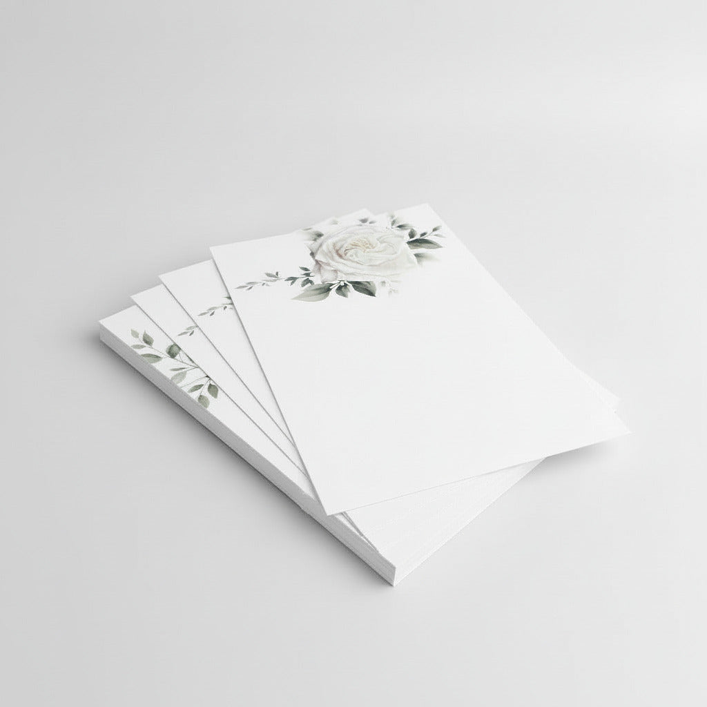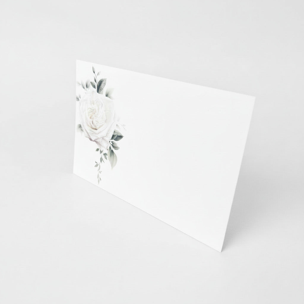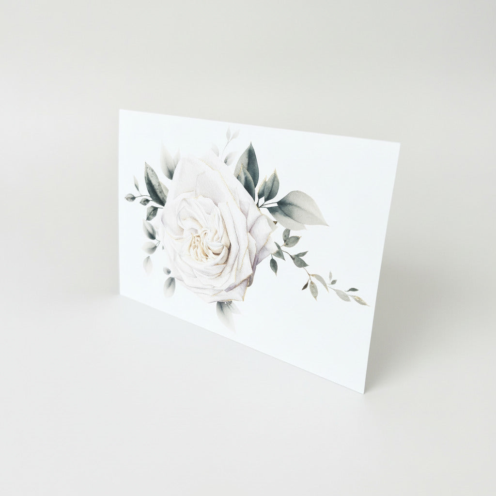 Begravningskort vit ros i akvarell - 10,5 x 14,5cm