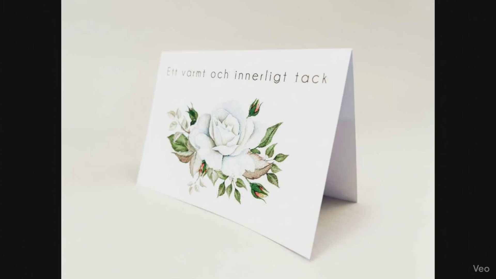 Insidan är tom för egen hälsning, men kan även användas med en standardiserad tacktext.