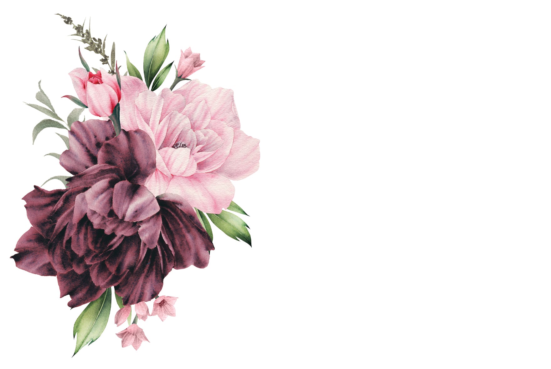 Begravningskort rosa/lila pioner i akvarell - 10,5 x 14,5cm