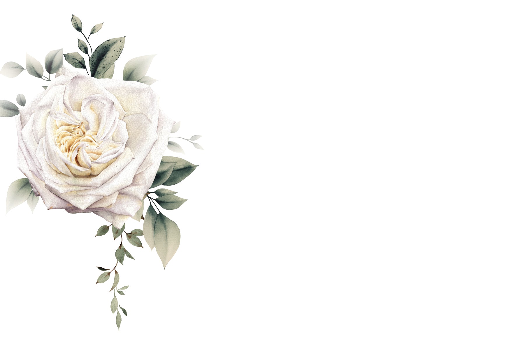 Begravningskort vit ros i akvarell - 10,5 x 14,5cm